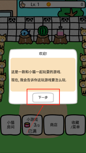 1、开始教程:点击屏幕上的“下一步”按钮,进入游戏教程,了解游戏的基本操作。