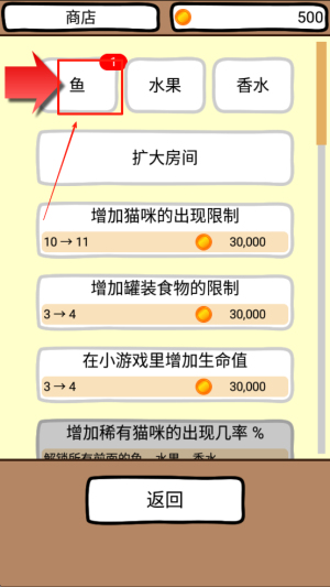 4、购买物品:进入商店界面,点击“鱼”选项,购买食物或其他道具,提升游戏体验。