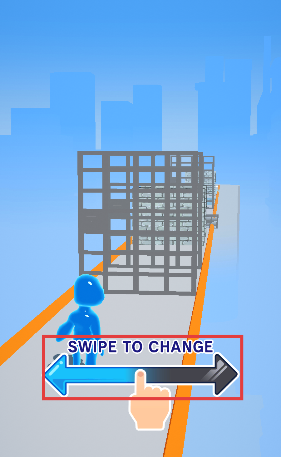 1、根据【SWIPE-TO-CHANGE】提示,滑动屏幕切换角色状态,准备开启城市跑酷关卡。