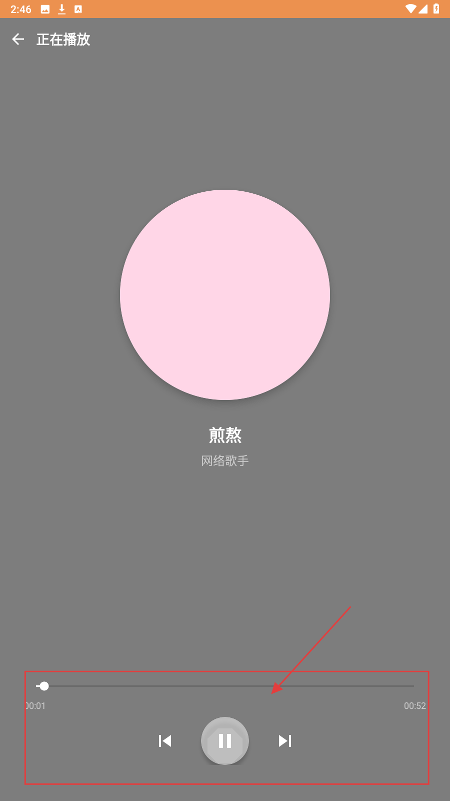 3、在播放页,拖动进度条、点暂停/切歌键,随心控制音乐播放。