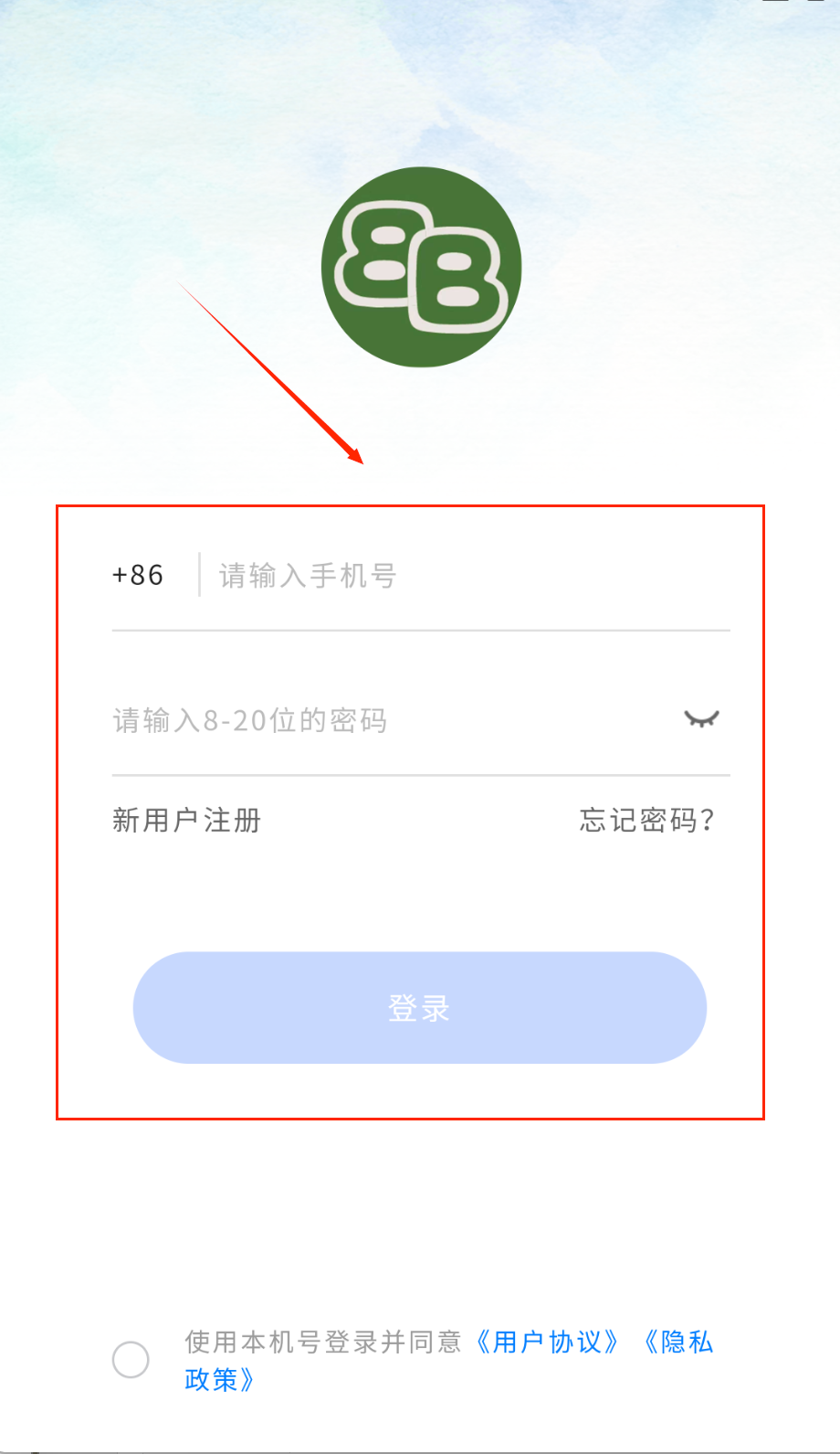 3、登录界面很清爽的,输入手机号和密码就行,想注册就点新用户注册,忘记密码也有专门入口,操作起来很方便呢。
