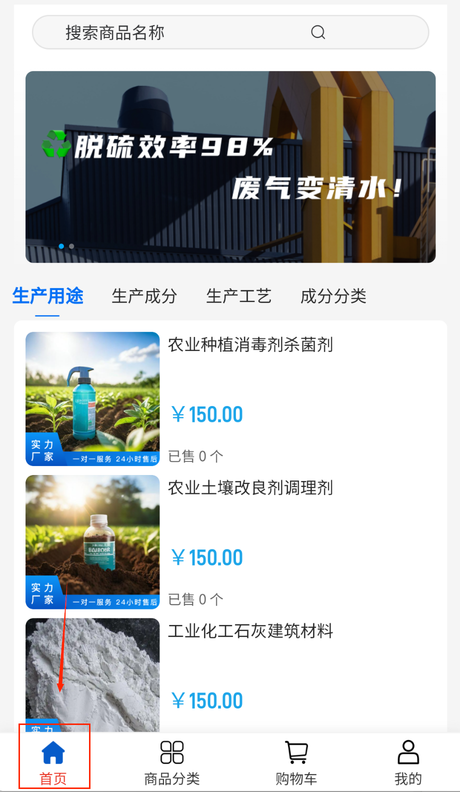 1、打开应用后可通过首页分类导航或搜索栏直接输入商品名称,系统将按生产用途、成分等维度展示匹配结果。