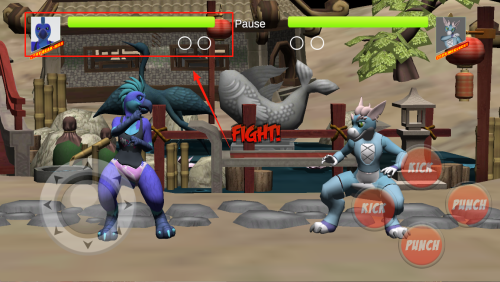1、熟悉操作:在出现“KICK、PUNCH”按钮时,先点“PUNCH”再点“KICK”练习基础攻击。