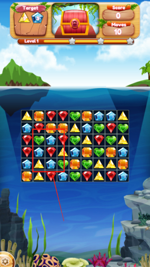 1、开启海底冒险:进入游戏熟悉操作,了解宝石匹配规则与道具作用,明确消除目标,开启海底宝石消除挑战。