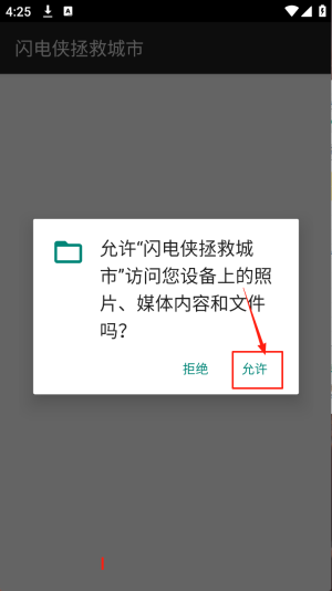 1、允许权限:在权限请求界面,点击“允许”让游戏访问照片与文件。