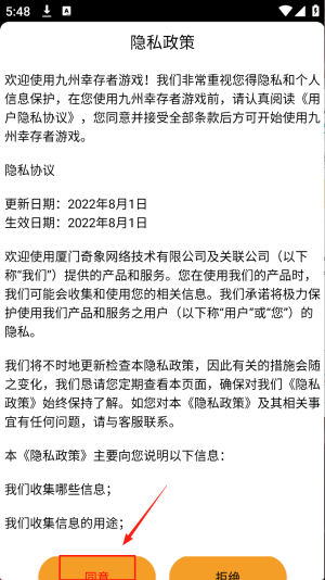 1、阅读隐私政策:在隐私政策页面,浏览后点击“同意”继续。