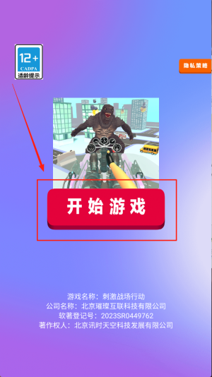 3、查看适龄提示:在12 适龄提示页,确认提示内容后点击“开始游戏”进入下一步。