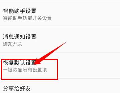 2、点击恢复默认“设置”的选项,如图所示。