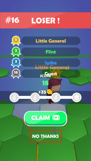 4、结束游戏:游戏结束后,根据结果选择“CLAIM”领取奖励或“NO THANKS”放弃奖励。