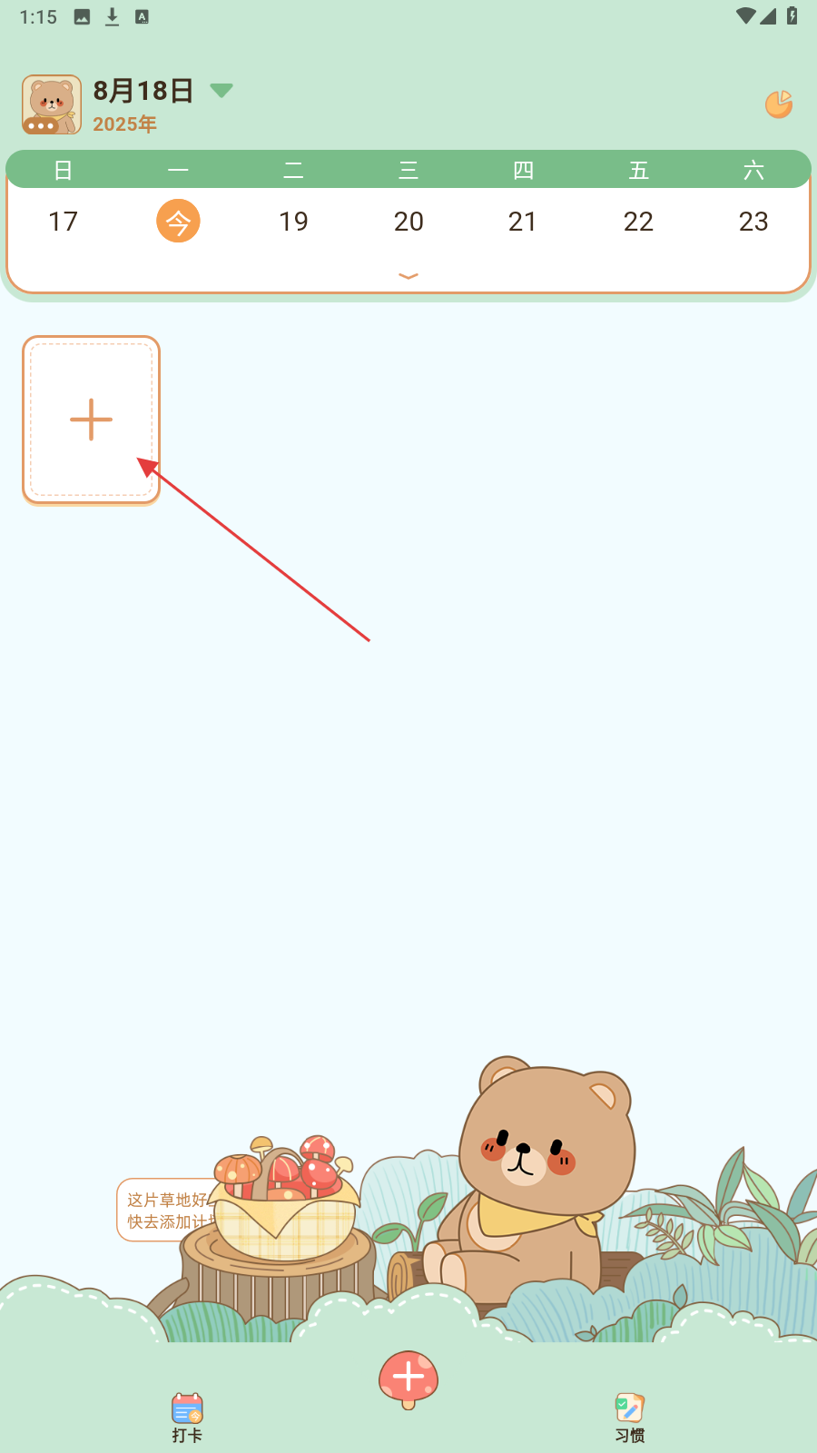 1、在打卡页点带【 】的卡片,进入新建习惯流程,开启习惯养成第一步。