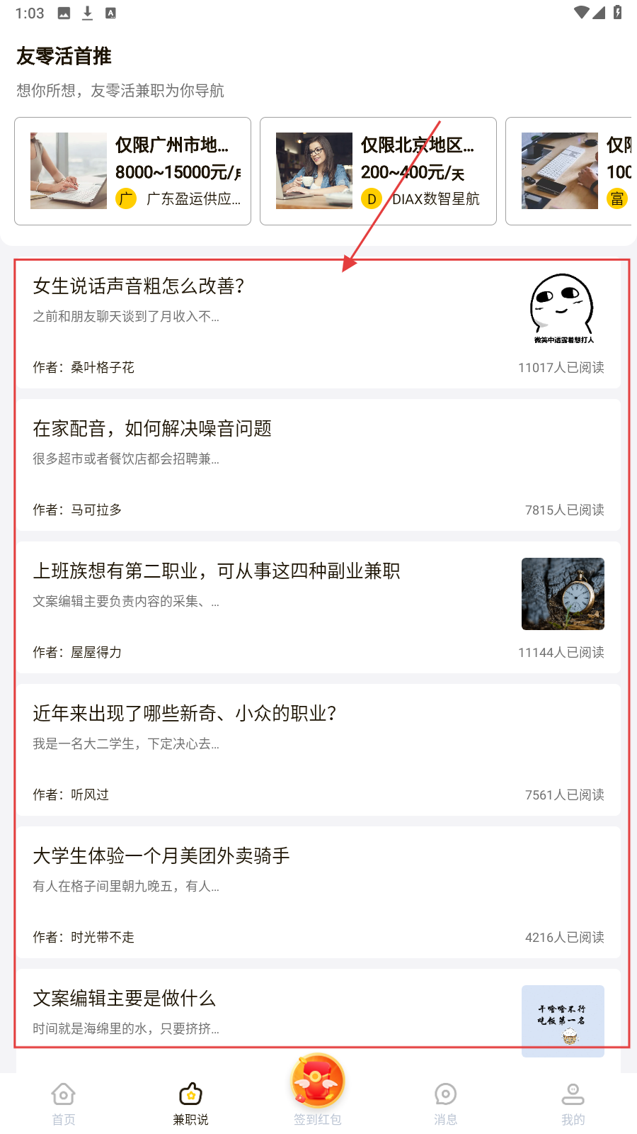 4、点进兼职说文章,像【女生说话声音粗怎么改善】,学习内容提升自身,助力兼职适配度。
