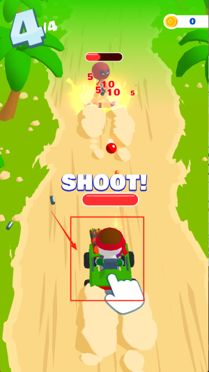 3、射击炸毁障碍:瞄准阻挡道路的障碍物射击,精准炸毁扫清路径,避免碰撞保持前进节奏,推进关卡。