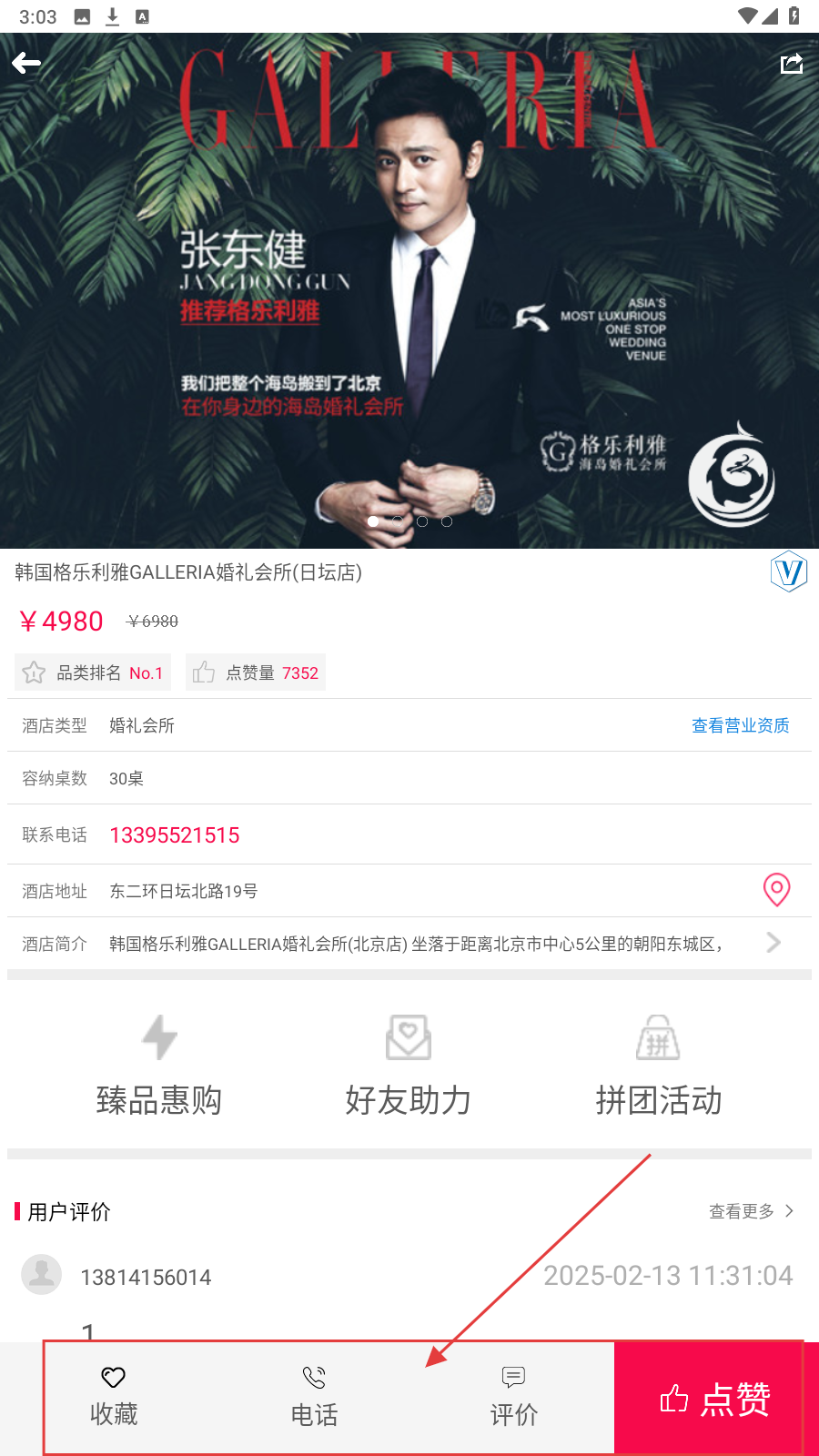 3、查看酒店详情,用【电话】联系商家,了解场地细节与档期。