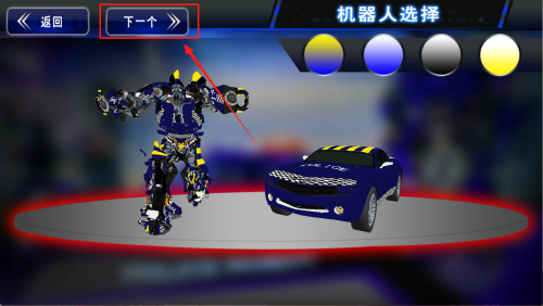 4、选择角色:在“机器人选择”界面挑选心仪机甲后,点击“下一个”正式进入游戏;若想重选,点“返回”即可。