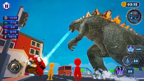 2、熟悉行动,成为恐龙巨人,成为城市中流浪着的怪兽,成为一方进行疯狂破坏的统治者。