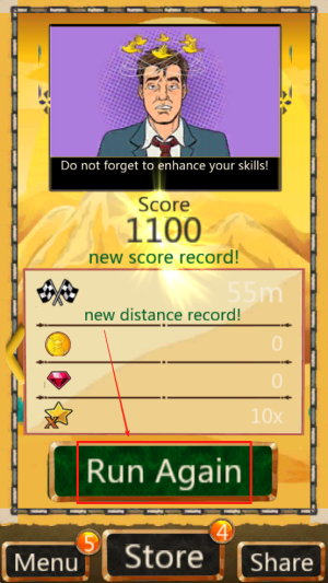 4、重新开始:当游戏结束后,点击“Run Again”按钮,继续挑战并刷新你的记录。