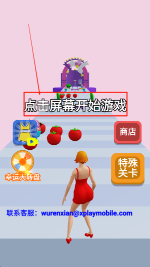 2、控制角色前进:操控小姐姐躲避前方障碍,通过吃东西维持身材,调整路线避开危险,向终点稳步推进。