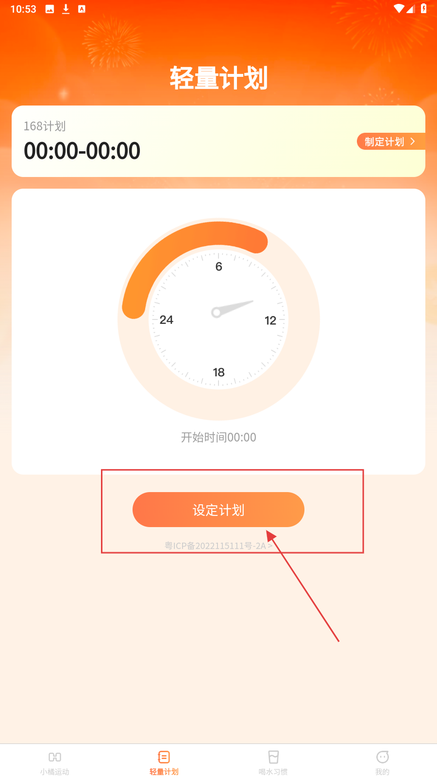 3、切换到轻量计划页,点【设定计划】按钮,可开启168轻断食等计划设置。