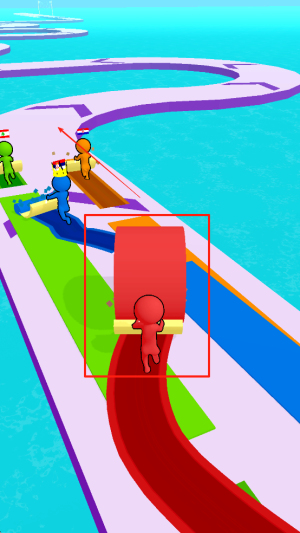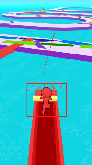 2、卷动彩色线条:控制角色卷动不同颜色线条前进,让线条随移动逐渐变大,保持线条滚动节奏不中断。