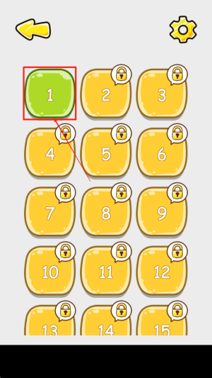 2、选择关卡:在关卡选择界面,点击数字1选择第一关开始游戏。