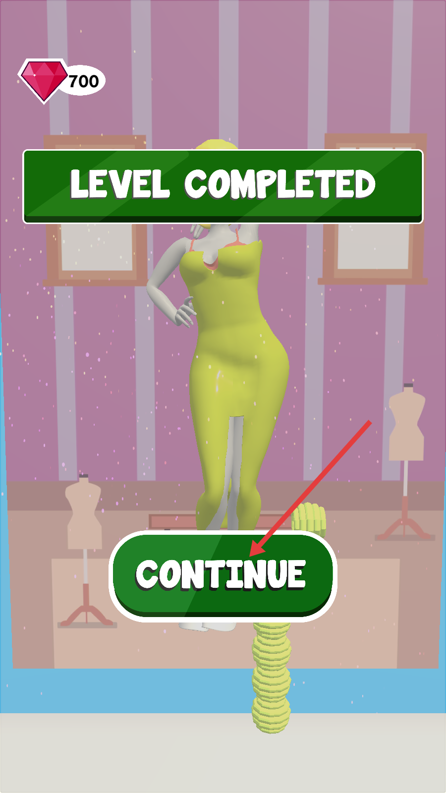 4、关卡显示【LEVEL-COMPLETED】,钻石累计700,点击【CONTINUE】进入下一关。