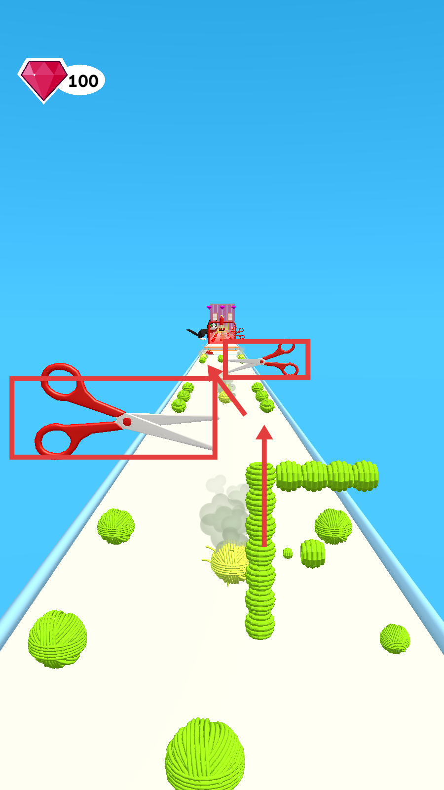 2、躲避【红色剪刀】陷阱,积累足够的毛线球,获得更高的分数。