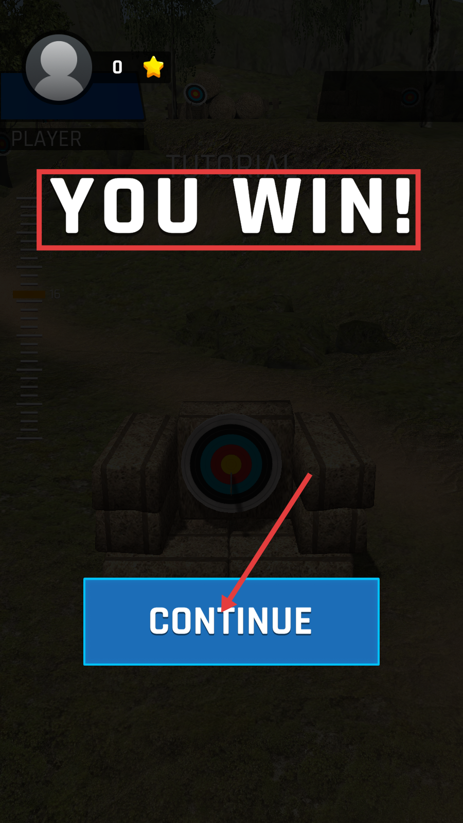 4、通关后点击【CONTINUE】按钮,解锁新关卡,积累【胜利-进度】推进游戏进程。