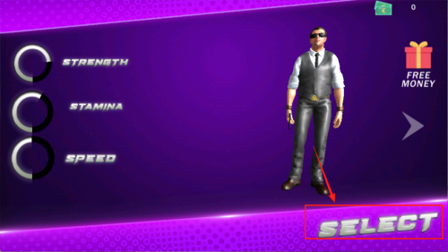 3、选择属性:在属性界面点击“STRENGTH”或“SPEED”等属性后,点击“SELECT”确认。