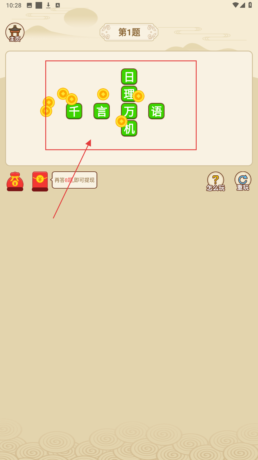 3、补齐成语日理万机、千言万语后完成答题任务。