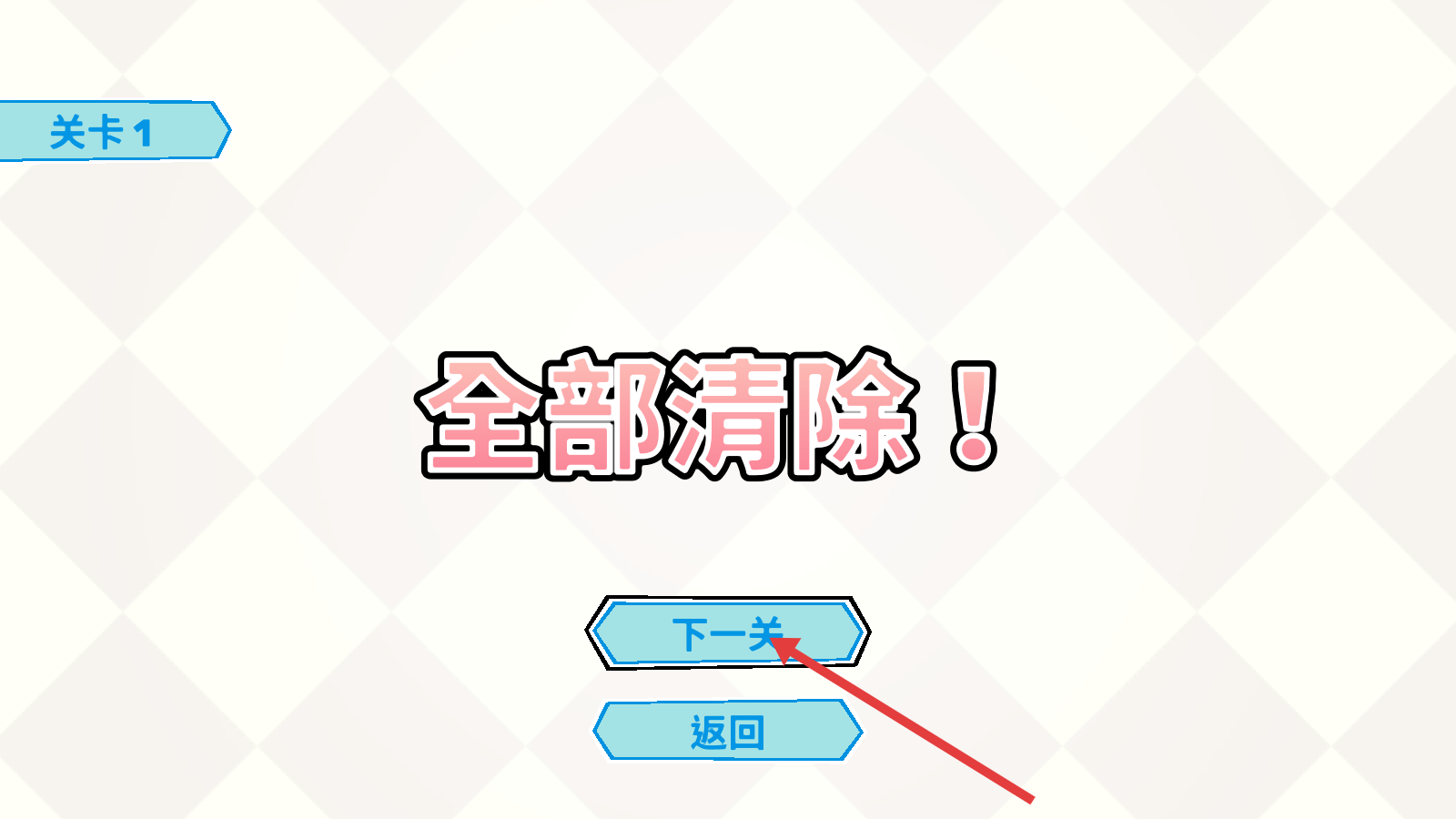 4、达成「全部清除」后,点击【下一关】,推进游戏进度。