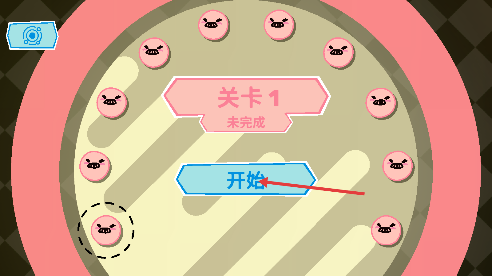 1、在关卡选择页,点击【开始】,进入「关卡1」挑战。