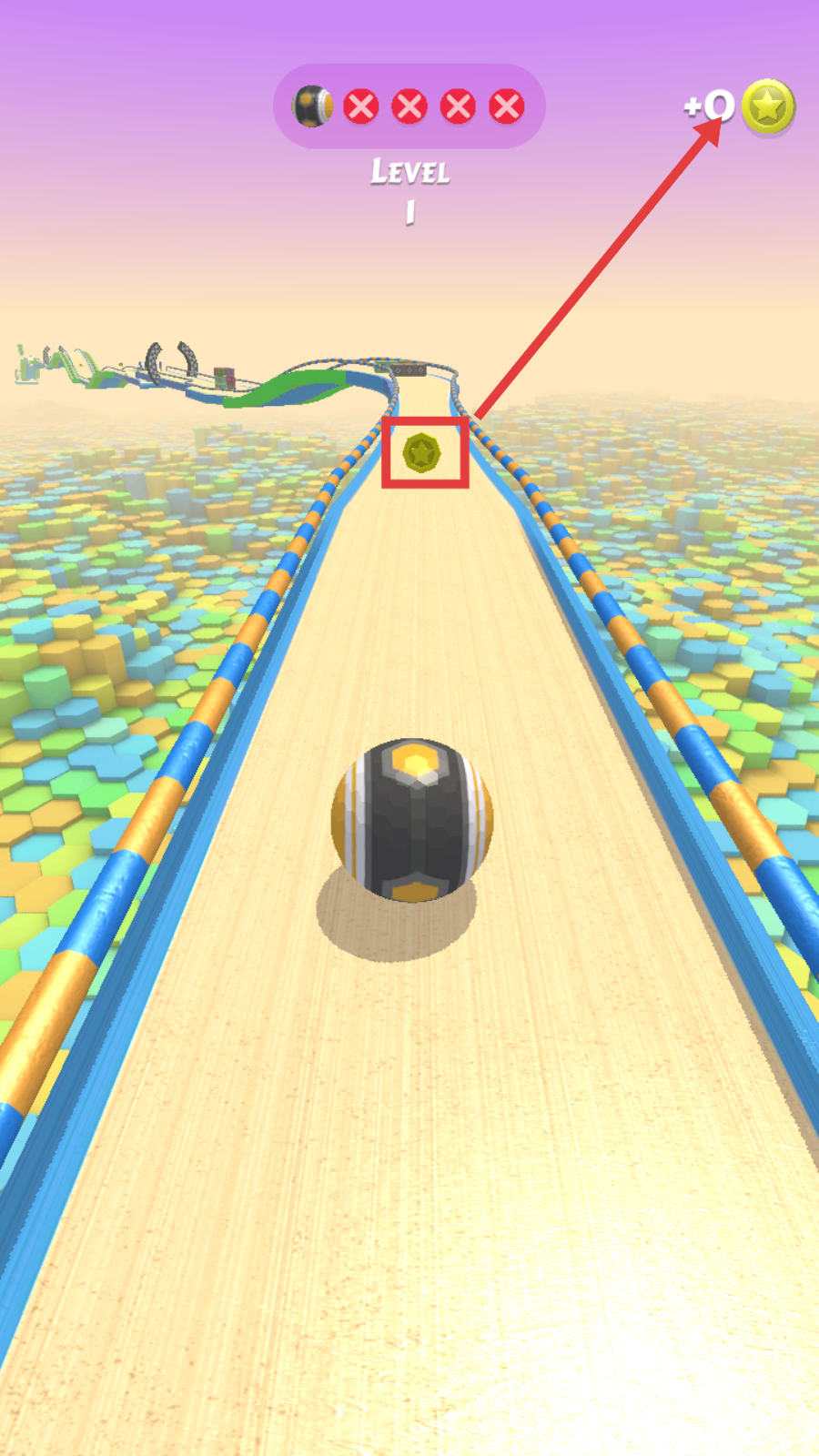 1、进入【Level1】,通过【滑动屏幕】控制球体左右移动,适应轨道操作。