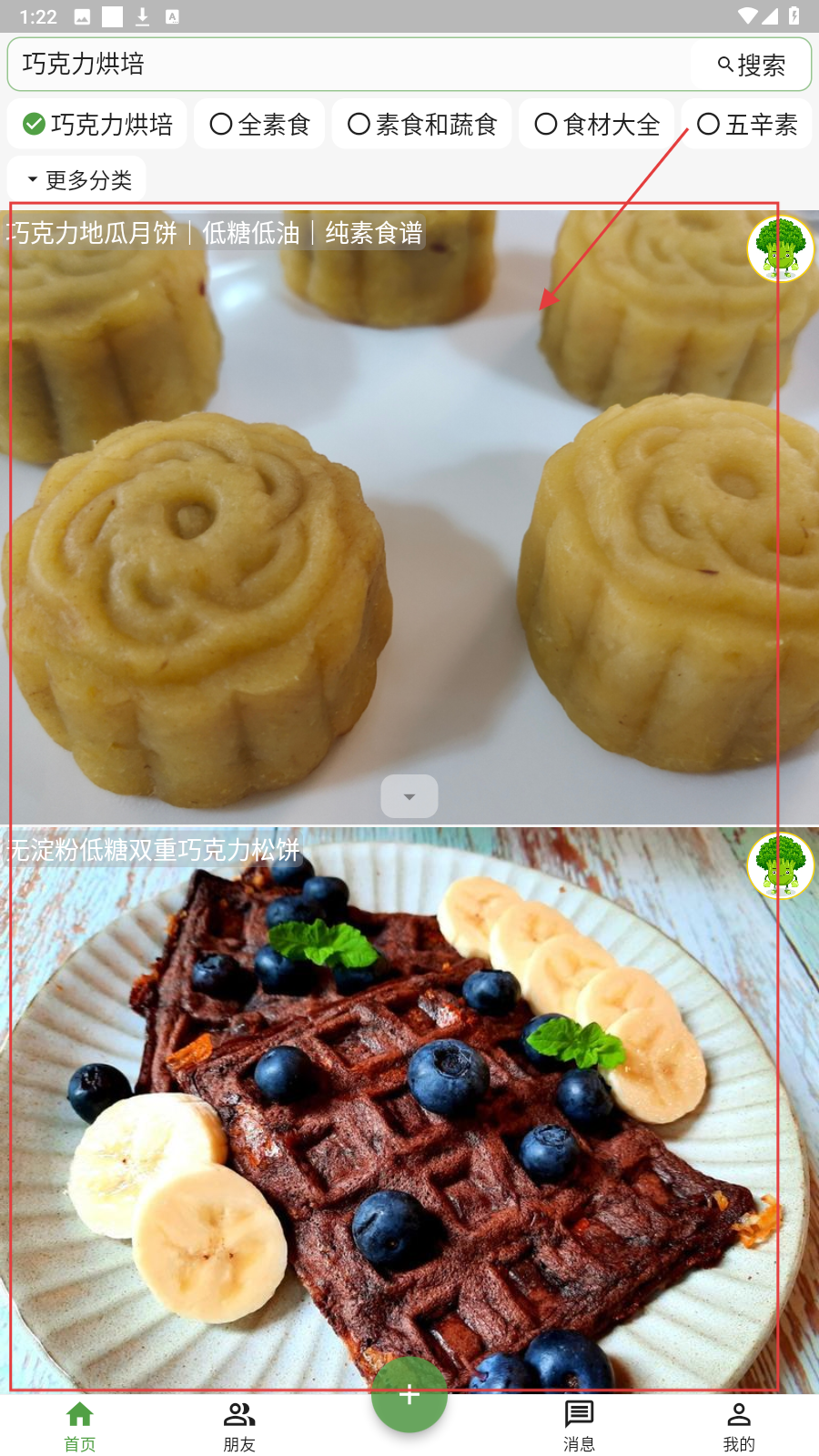 3、选【巧克力烘培】分类,浏览相关素食美食,如巧克力地瓜月饼等内容。