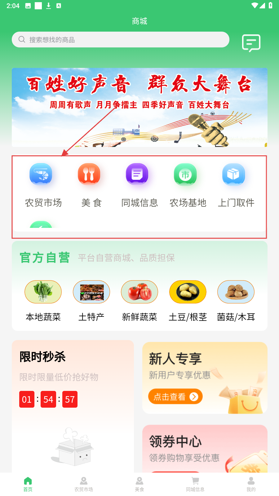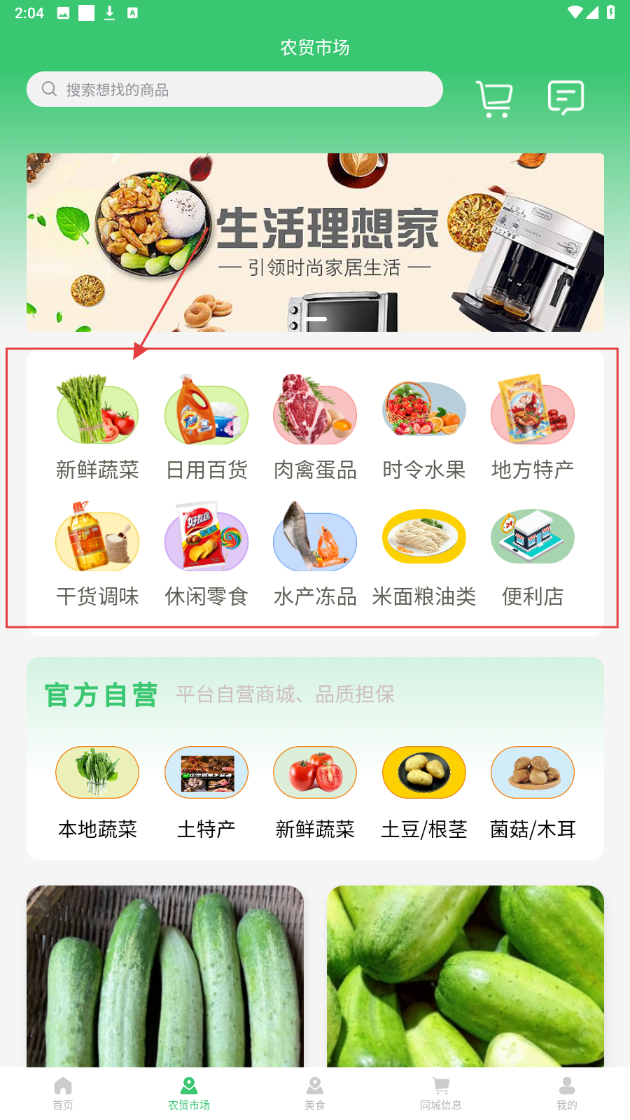 1、进入商城首页,选【农贸市场】,进入对应分类页找商品。