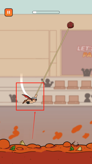 2、借力牛肉丸跳跃:在前进中抓住牛肉丸借力起跳,控制跳跃力度与方向,避免掉落,保持闯关节奏。