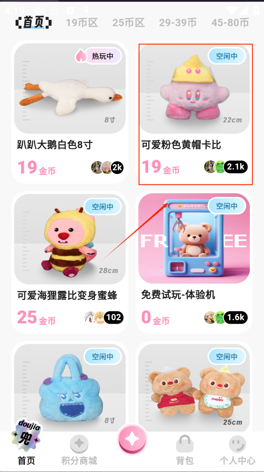 1、注册账号后完成实名认证即可获得新人礼包,在设备列表浏览各城市可操控的娃娃机实时画面,通过筛选功能查找目标奖品类型。