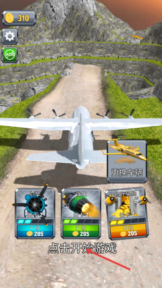 1、关卡2点击【点击开始游戏】,可优先升级【引擎】【强化】【额外奖励】,强化飞机性能再启程。