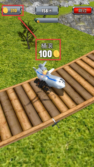 3、行驶中完成【桶滚】动作,获取【100-金币】,积累资源,同步更新左上角【310-金币】。