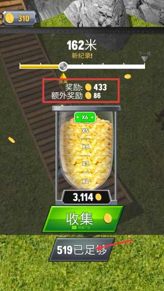 4、赛程结束后,查看【奖励-433】与【额外奖励-86】,按需选择【收集】或【519已足够】续玩。