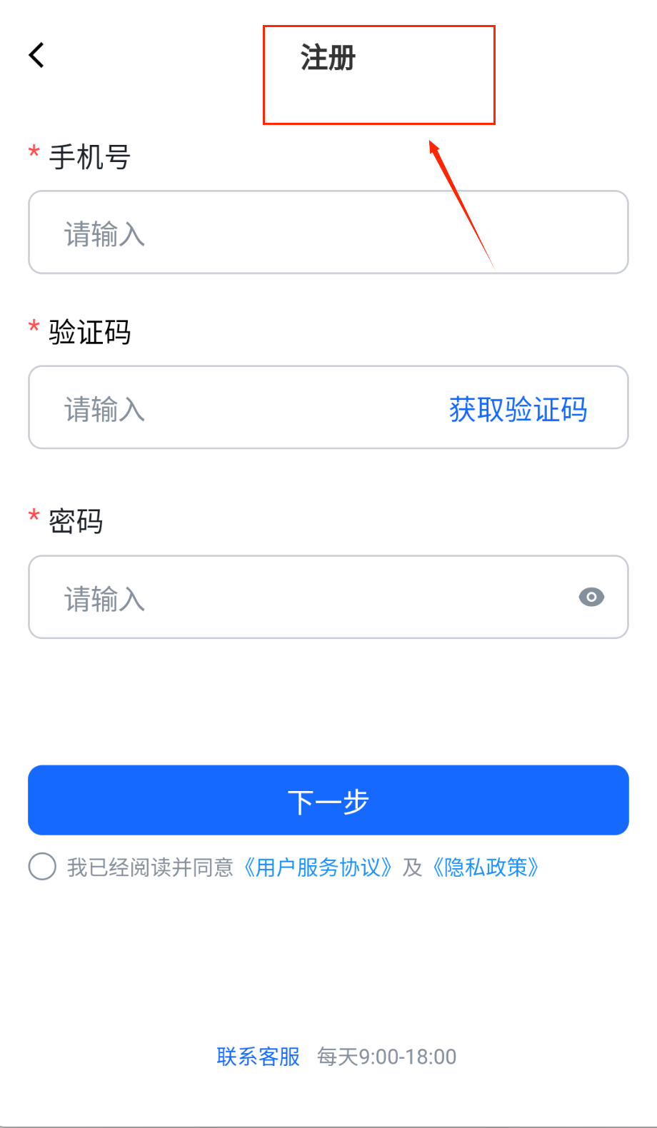 1、注册时先输入手机号再点获取验证码呢,密码要设6位以上记得勾选同意协议,点下一步就能完成注册啦。