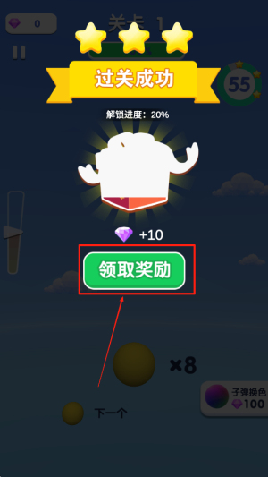 4、领取奖励:完成关卡后,点击“领取奖励”按钮,获取游戏奖励。