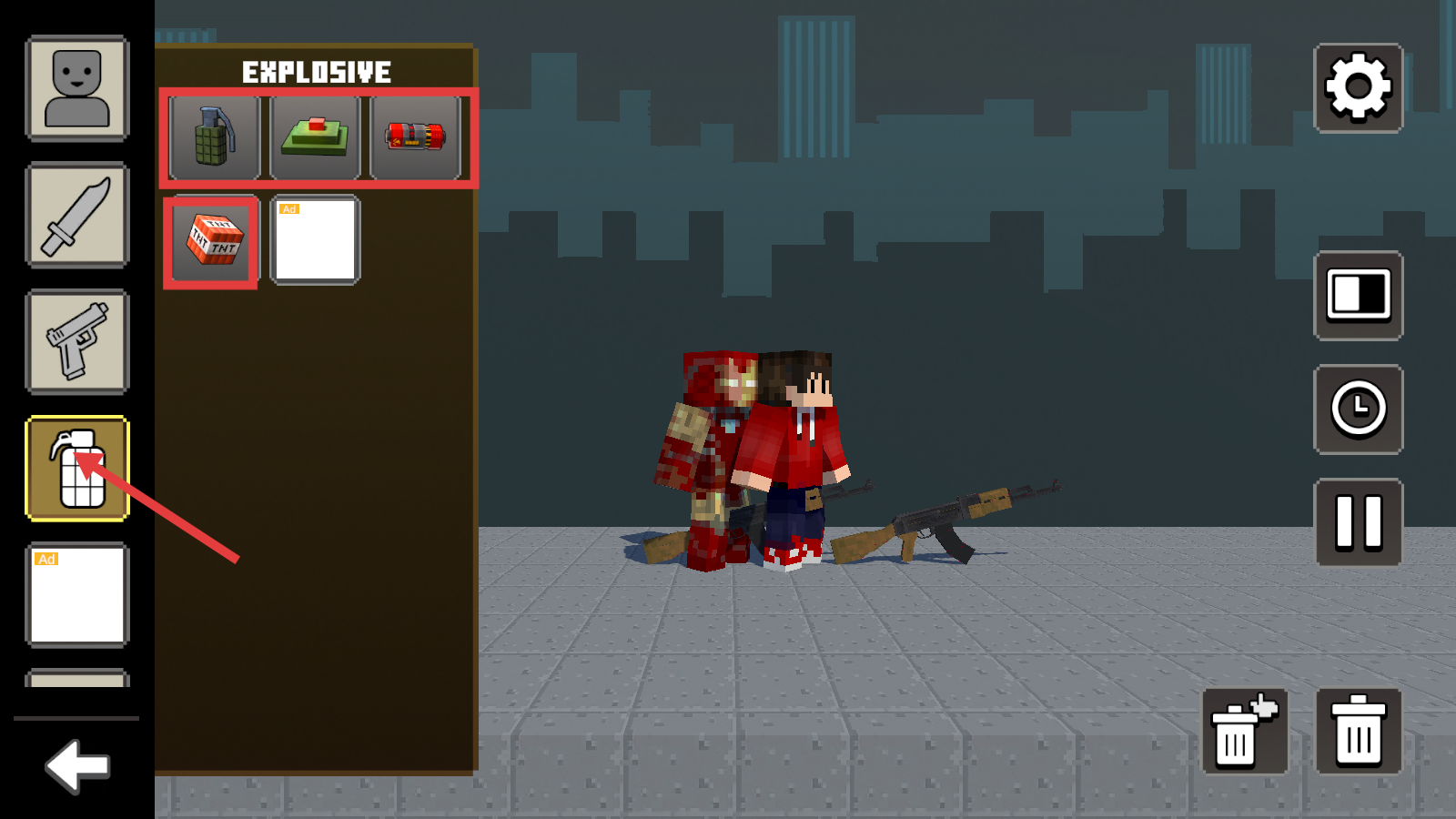 4、点击左侧爆炸物栏,配备【EXPLOSIVE-手雷】,遇群敌时投掷,快速清场节省资源。