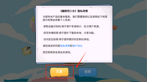 3、阅读隐私政策后,点击“同意”,否则游戏将自动退出。