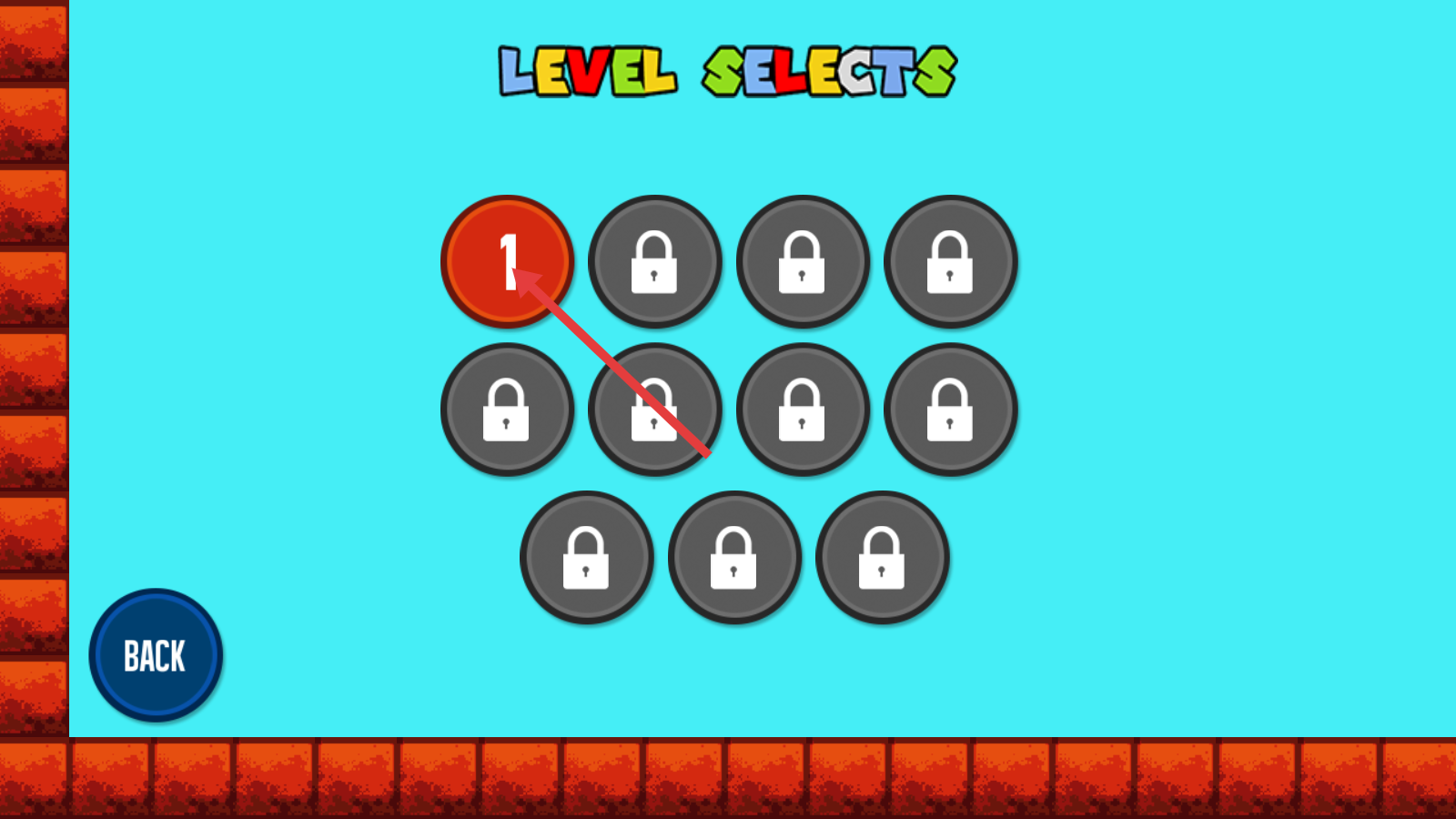 1、在【LEVEL-SELECTS】界面选红色【1】号关卡,开启首战,熟悉游戏基础机制与操作逻辑。
