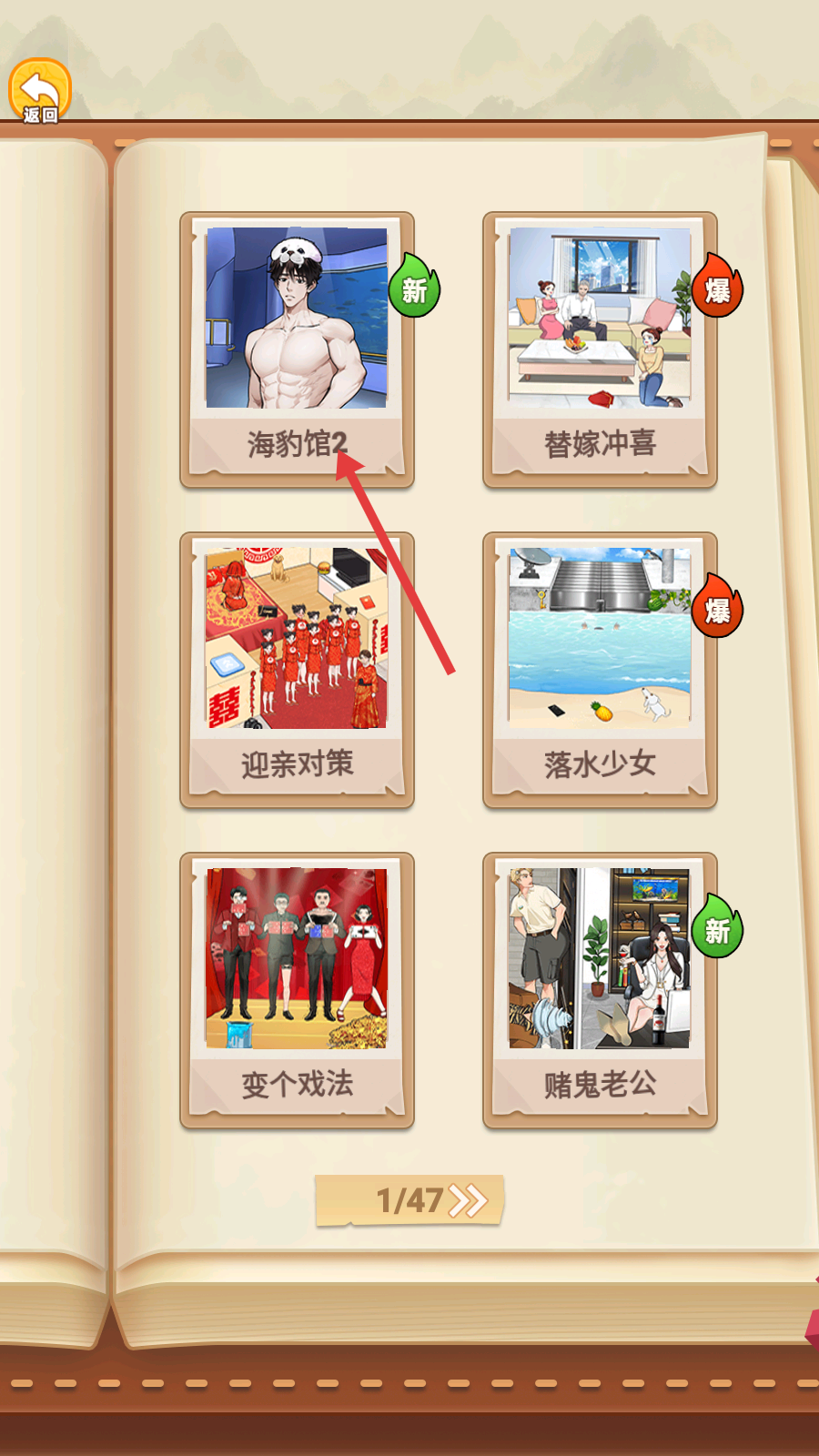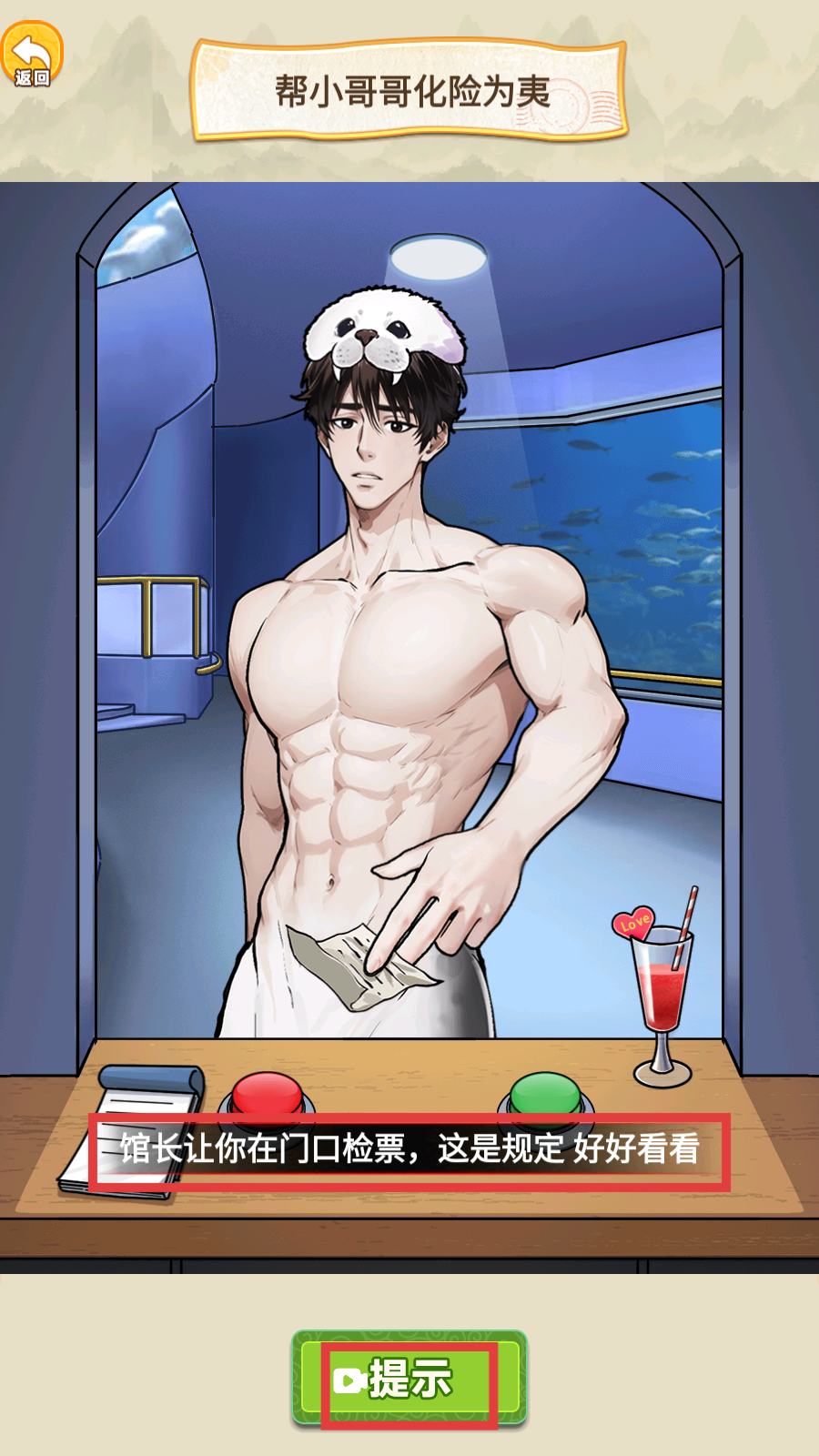 1、在关卡列表选标【新】的【海豹馆2】,开启帮小哥哥化险为夷的检票解谜剧情。
