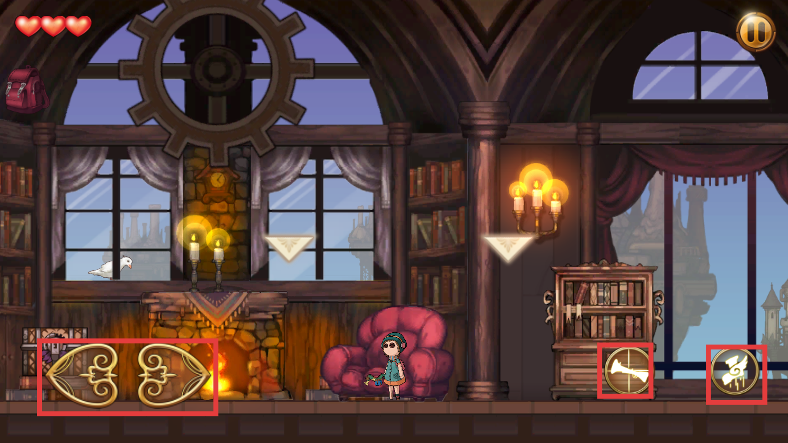 2、探索室内场景,观察左侧【金色机关】与右侧技能图标,熟悉交互方式,为解谜蓄力。