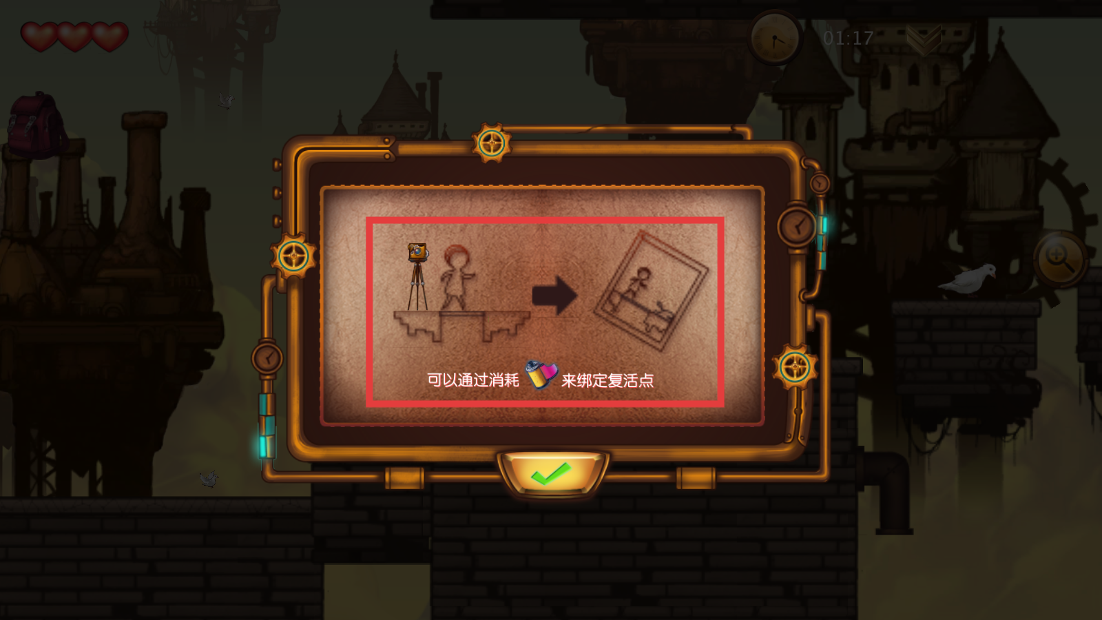 4、学习消耗【颜料道具】绑定复活点,闯关前设置,死亡后快速回溯,降低重玩成本。