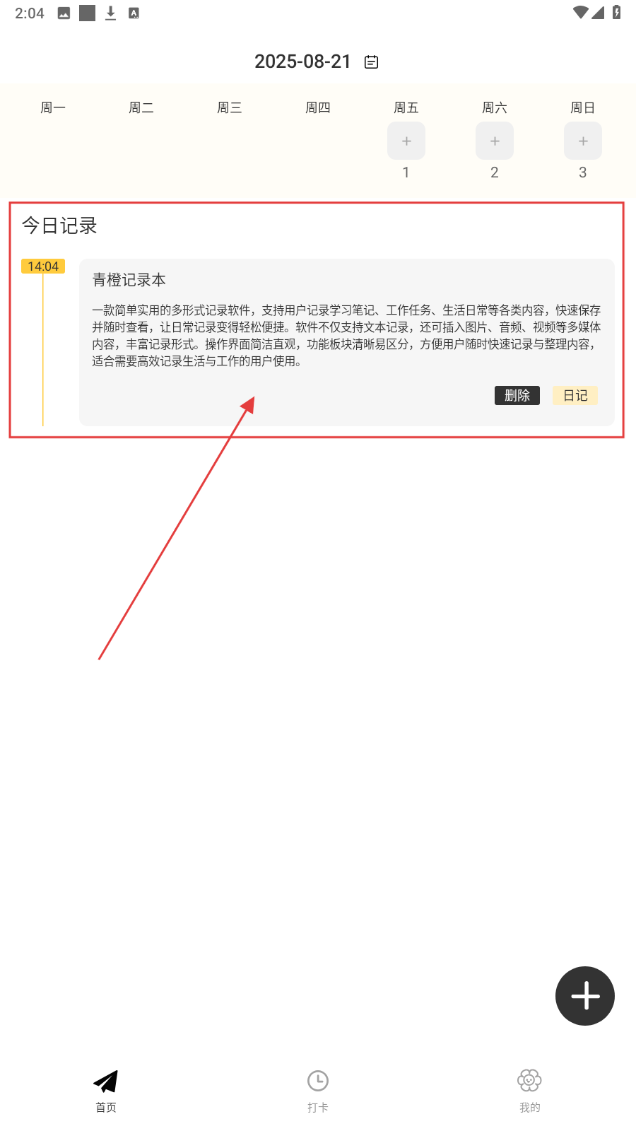4、返回首页,在【今日记录】查看已保存的日记。