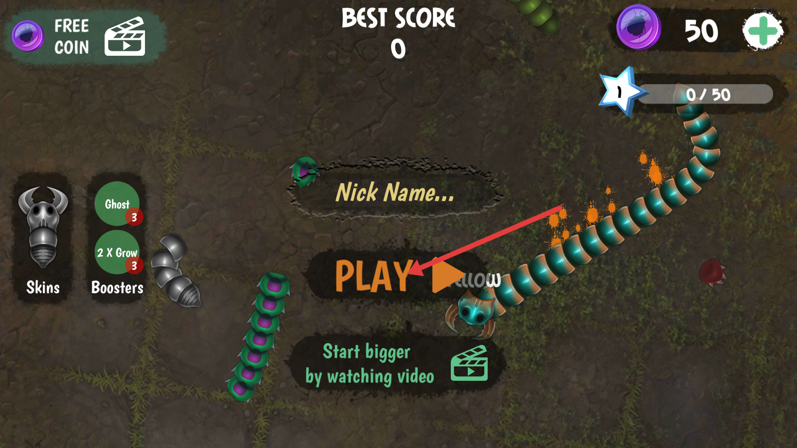 1、主界面点击【PLAY】,操控名为【INSATIABLE】的虫子,开启吞噬成长对战。