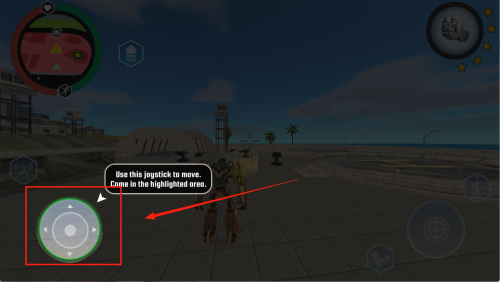 3、根据“Use this joystick to move”提示,用左下角摇杆控制角色移动。
